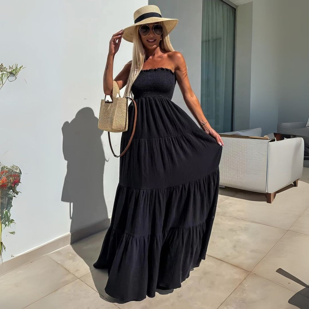 Uncover a new sense of confidence this summer with a stunningly refined silhouette. Designed for style-savvy women who value ease without compromising on grace, this strapless long dress brings a sophisticated twist to warm-weather dressing.
